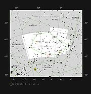 This object, located between 3000 and 6500 light-years away in the Southern constellation of Vela (The Sails), has two central stars, which are believed to give it its nearly symmetric appearance. After one star reached the end of its life and cast off its outer layers, the other star now interferes with the flow of gas, forming the two-lobed shape seen here. Only about 10–20% of planetary nebulae [1] display this type of bipolar shape.